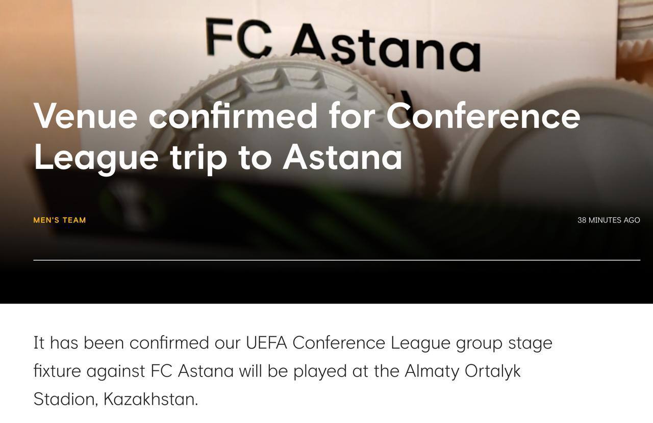 Было подтверждено, что наш матч группового этапа Лиги конференций УЕФА против ФК "Астана" пройдет на Центральном стадионе в Алматы, Казахстан, - говорится в сообщении на официальном сайте "Челси"