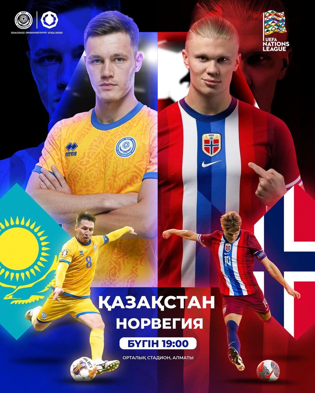 Начало матча Казахстан — Норвегия в 19:00, прямая трансляция на телеканале «Qazsport».